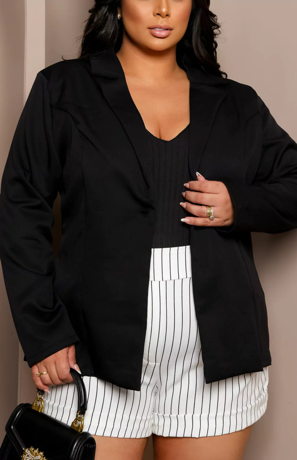 Peça confeccionada em Tecido Alfaiataria Premium, composto por 90% Poliéster e 10% Elastano. O tecido possui toque suave, elasticidade ideal e caimento alinhado, proporcionando elegância, conforto e valorização das curvas.