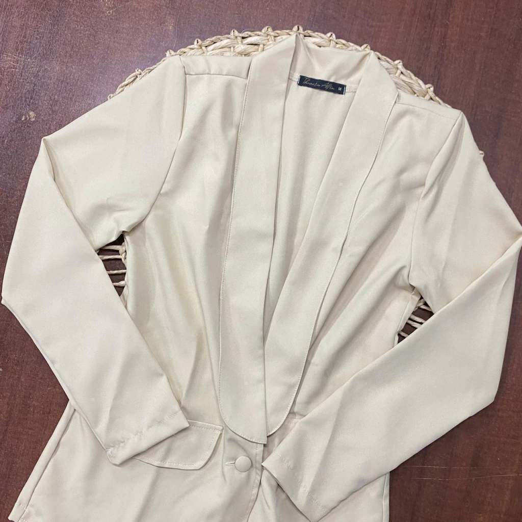 Peça confeccionada em Tecido Alfaiataria Premium, composto por 90% Poliéster e 10% Elastano. O tecido oferece caimento alinhado, toque macio e elasticidade ideal, garantindo elegância e conforto em todas as ocasiões.