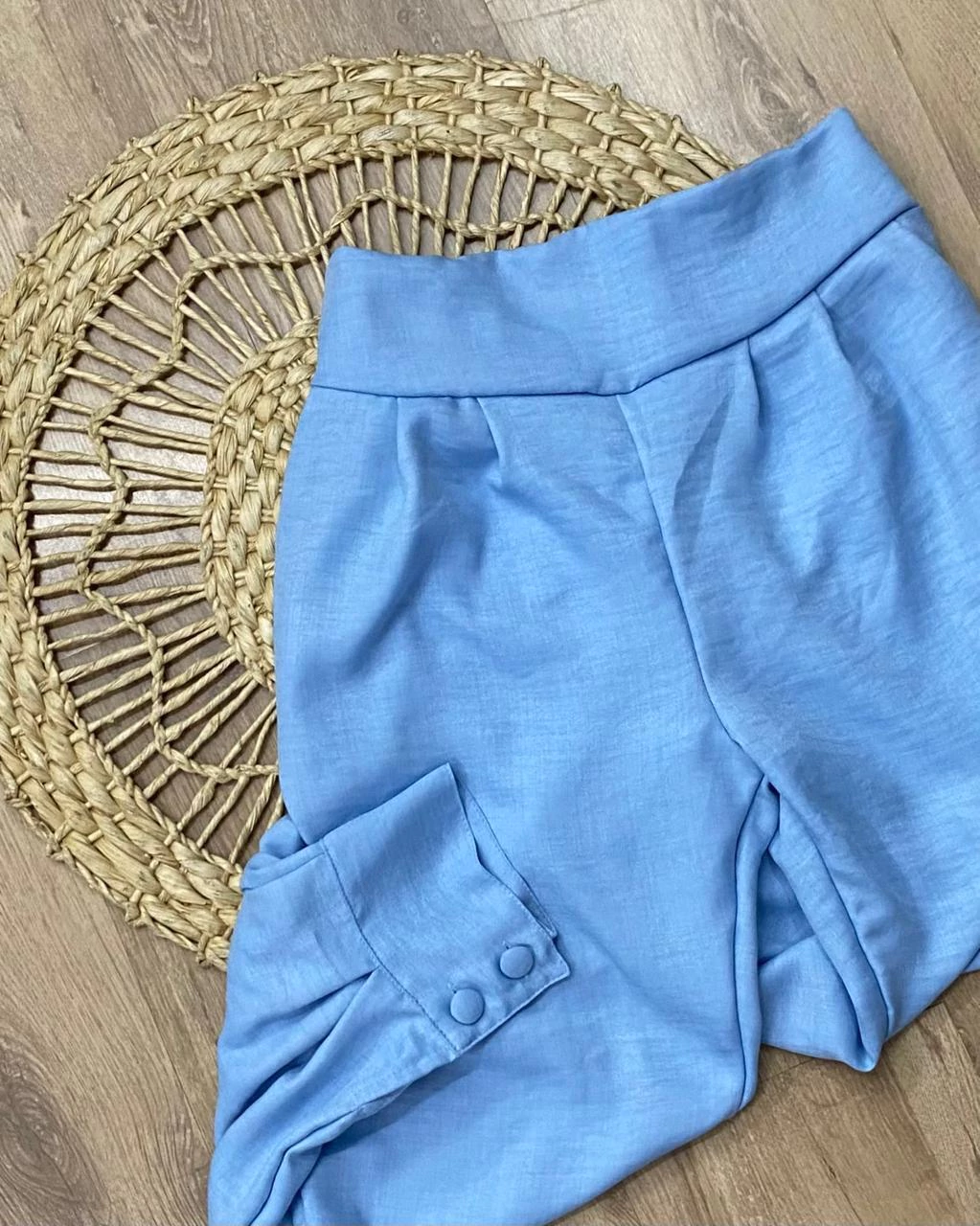 Possui cintura alta com faixa anatômica, pregas frontais, bolsos laterais funcionais e detalhe de botões no tornozelo, que traz estilo e personalidade à peça. Versátil, confortável e perfeita para todas as ocasiões.