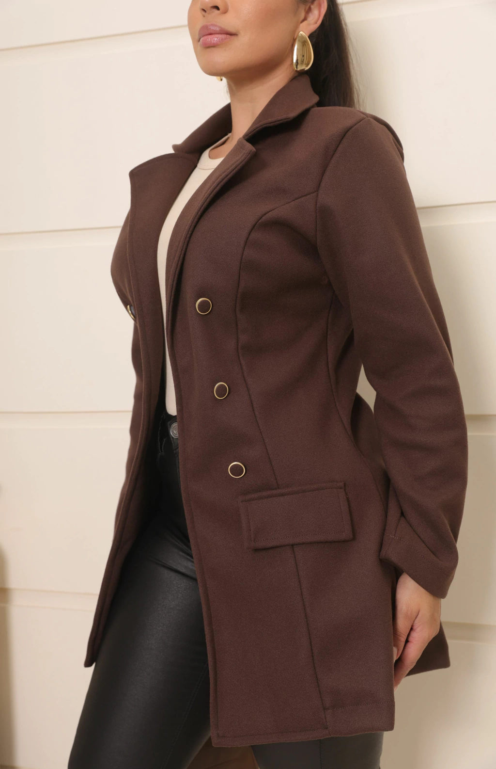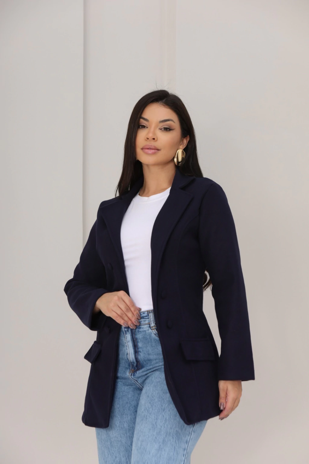 Peça confeccionada em Tecido Lã Batida, composto por 96% Poliéster e 4% Algodão. O tecido possui toque macio, caimento encorpado e leve proteção térmica, proporcionando conforto e sofisticação ao vestir.