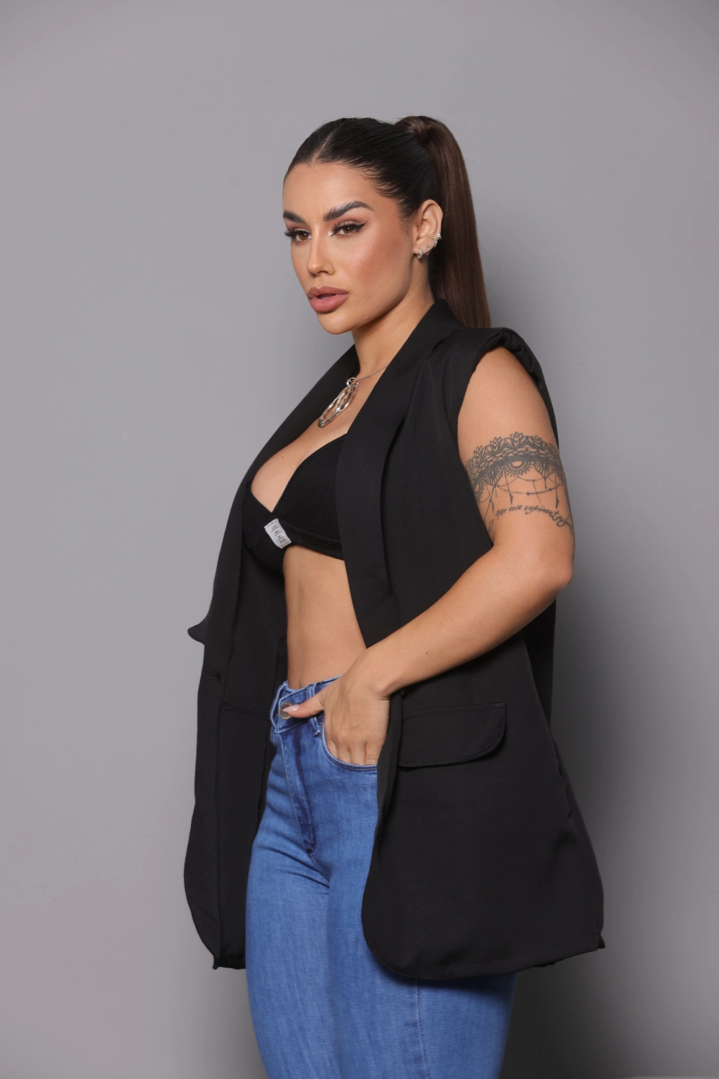 Peça confeccionada em Tecido Alfaiataria Premium, composto por 90% Poliéster e 10% Elastano. O tecido oferece caimento impecável, toque macio e elasticidade ideal, proporcionando elegância, conforto e modernidade.